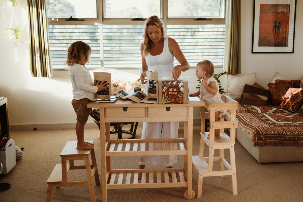 Lovingly hand crafted in a one bedroom loft style apartment in South Fremantle by a solo muma with two very enthusiastic toddlers underfoot who are also my biggest chai fans, you can usually find us enjoying the daily ritual of chai and a tiny bit of dark chocolate, sitting at the kids' table.